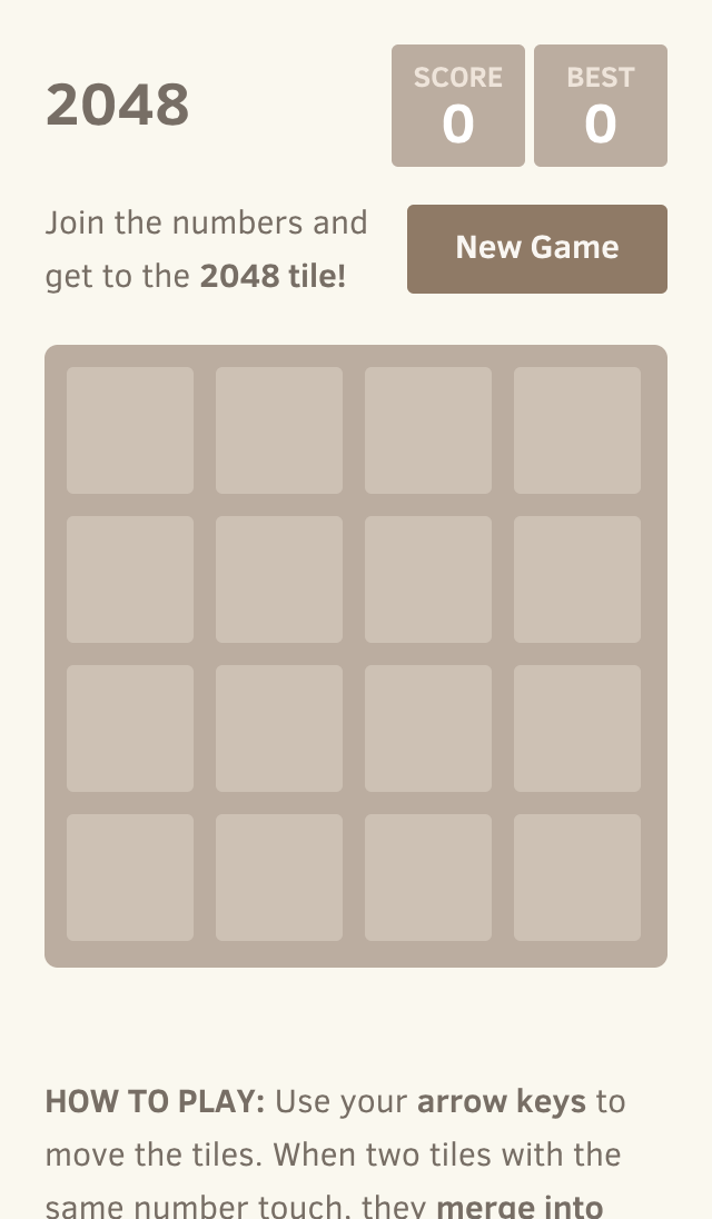 Comment jouer : Utilisez vos flèches pour déplacer les tuiles. Lorsque deux tuiles avec le même nombre se touchent, elles fusionnent en une seule !